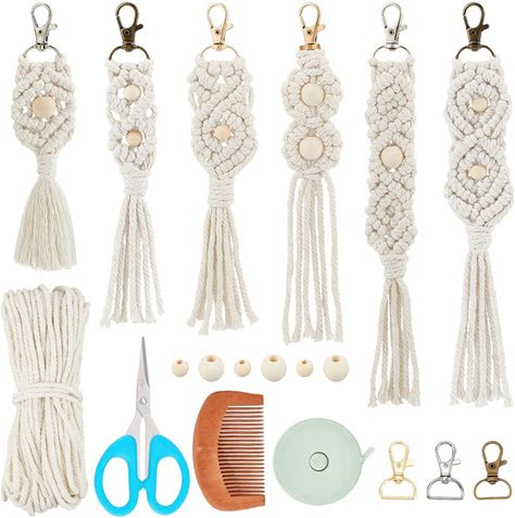 FREEBLOSS 6 Set DIY Macrame Owl Keychain Kits Owl Macrame Kit Macrame Keychain With Video Tutorial Macrame Kits For Beginners Boho Macrame Keychain