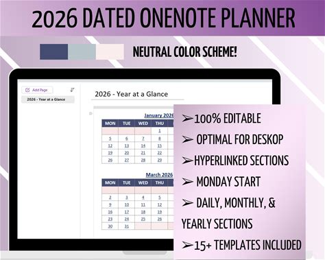 2026 Onenote Digital Planner, Onenote Digital Planner Template, 2026 Digital Planner, Hyperlinked 2026 Calendar